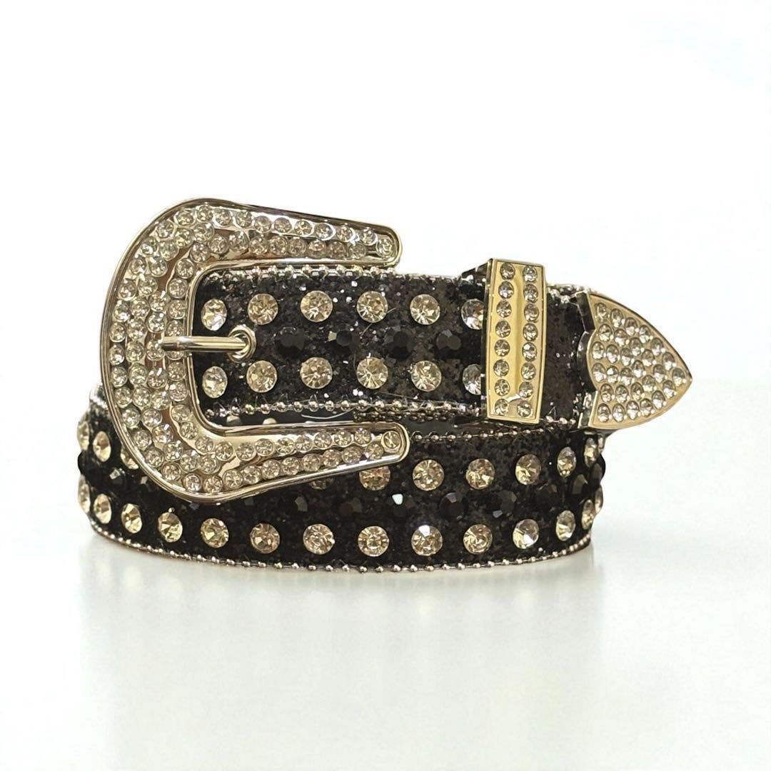 光り輝くストーンが贅沢に敷き詰められたバックルと、高級感あるストーンで装飾されているベルト帯が存在感のあるデザインのウエスタンベルト。古着やストリートファッション、アメカジ、グランジ、y2k、韓国ファッション、ビンテージなどを好む方に特におすすめ。