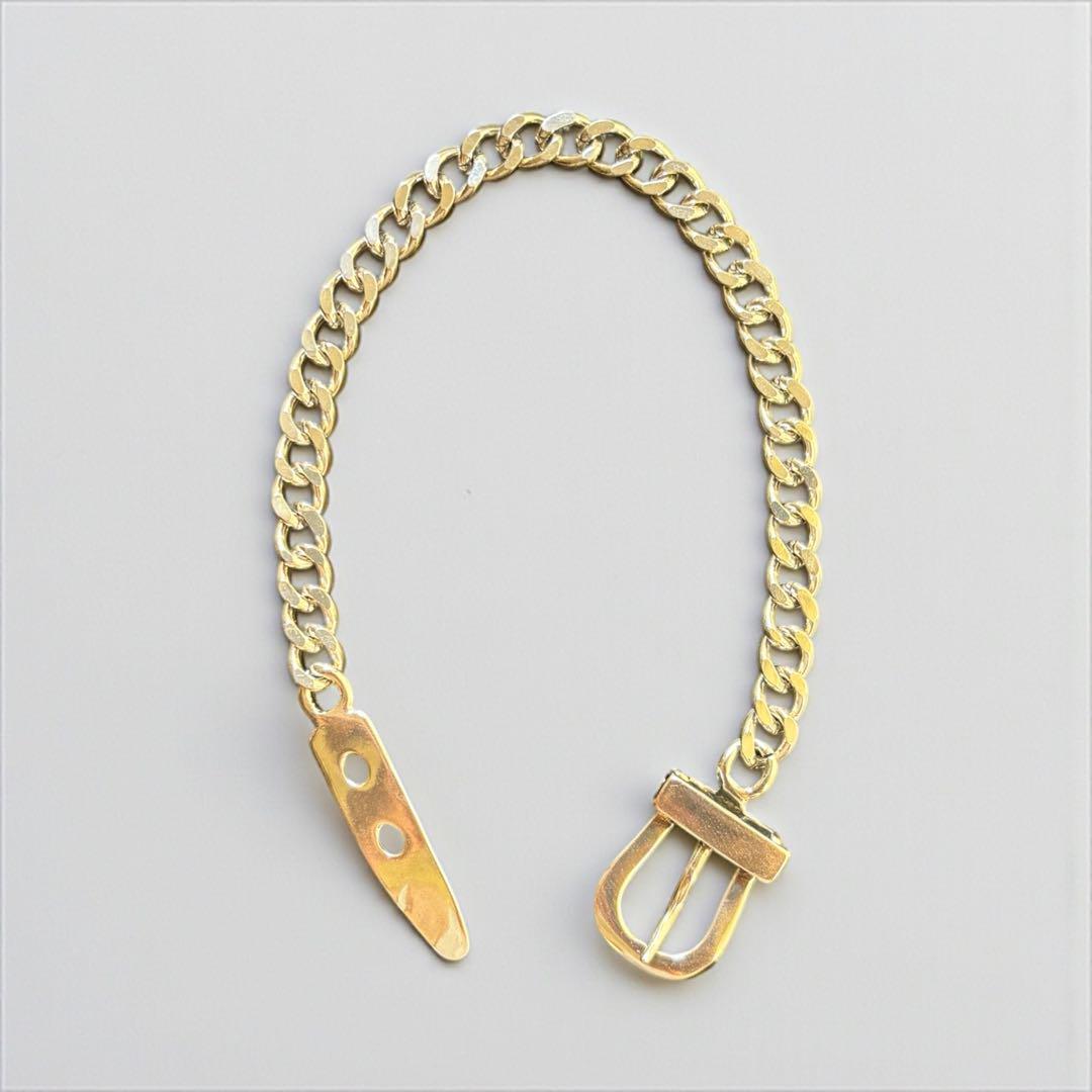 高級感のある銀色の輝き、ベルトがモチーフのデザインが特徴のブレスレット。手元が見えやすくなるこれからのシーズンにおいて汎用性の高いアイテムです。モードやストリート、y2kやグランジ、アメカジや古着など幅広い系統に合わせやすいです。