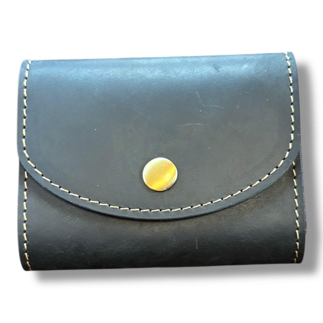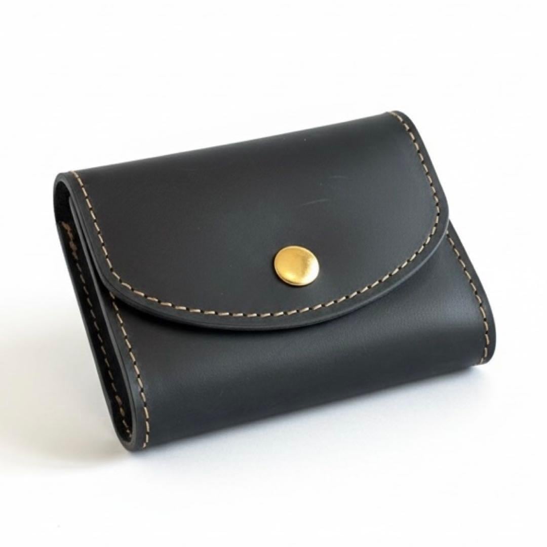 無駄のないシンプルなデザインに、金色のボタンが映えるコンパクトウォレットです。表面には本革(牛革)を使用しており、使い込むほどに柔らかさや風合いが増し、経年変化を楽しめます。革特有の性質として、表面に小さな傷や色むらが見られる場合がありますが、天然素材ならではの個性であり、一点ごとに異なる表情を楽しめる仕様です。ポケットにも収まりやすいサイズ感で、必要最低限をスマートに持ち歩きたい方におすすめ。シンプルな中に存在感のあるデザインは、ナチュラル派から革小物を好む大人の男女まで幅広くマッチします。