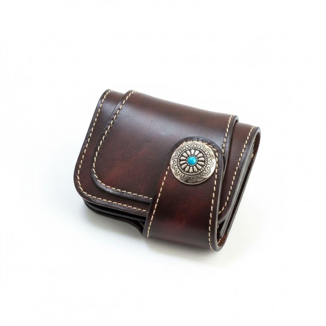 上質なヌメ革(牛革)を使用した、存在感抜群のウォレットです。表面加工を抑えたヌメ革ならではの質感は、使い込むほどに深みのある色艶へと変化し、持つ人の個性を映し出してくれます。カードは3枚収納可能、さらに紙幣入れと小銭入れを備え、コンパクトながらもしっかり実用性を兼ね備えています。留め具にはリベットを採用し、無骨ながらも高級感のある仕上がり。バイカースタイル、アメカジ、古着好きの方に特におすすめ。日々の使用で革が育ち、自分だけの一点物へと変化していく過程を楽しめます。