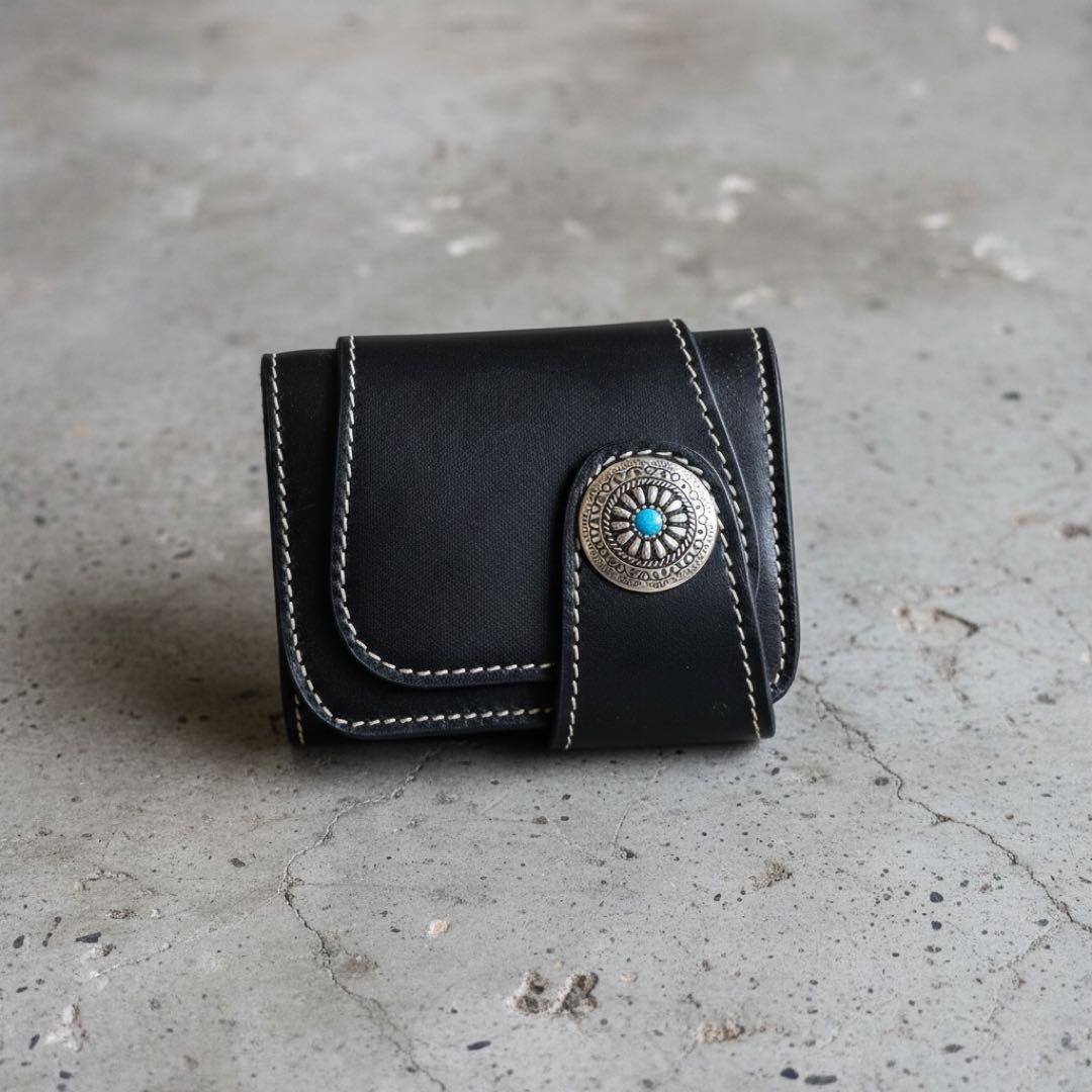 レザーウォレット コンパクト コンチョ ブラック 革 アメカジ 古着 kp16