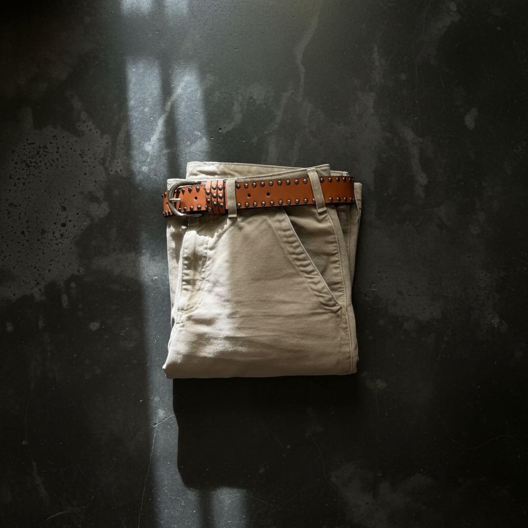 アメリカのカウボーイを彷彿とさせるシルエット、バックルに2連のスタッズが施されており、シンプルかつ上品なデザインのウエスタンベルト。存在感のあるデザインです。古着やストリートファッション、アメカジ、グランジ、y2k、ビンテージなどを好む方に特におすすめ。