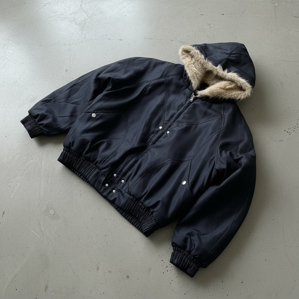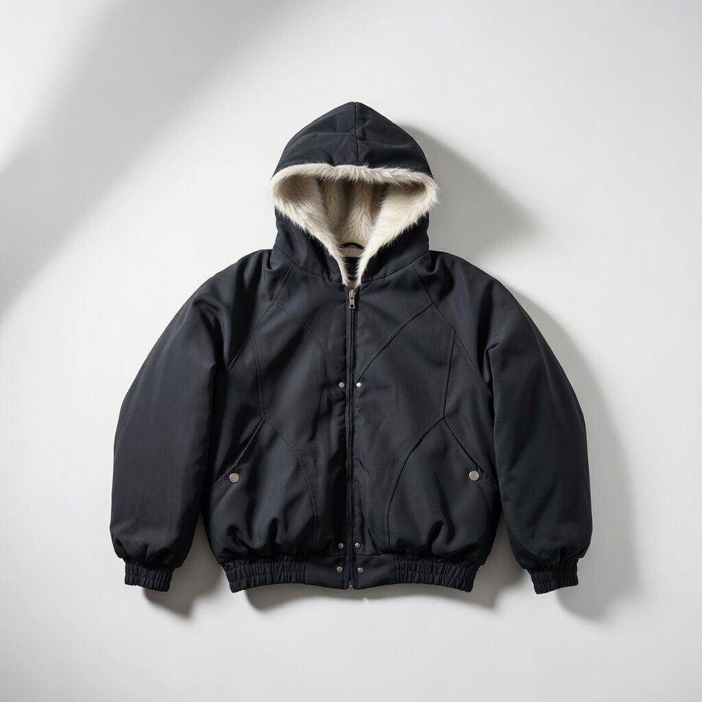 洗練された雰囲気漂う短丈シルエットのブラックファージャケット。