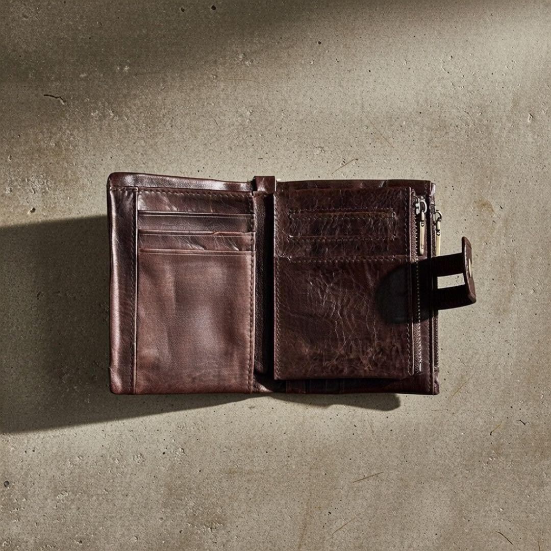 落下防止のチェーン付きで、腰やバッグにしっかり固定でき、移動中も安心。お札・小銭・カードをまとめて収納できる大容量設計で、これ1つで必要なアイテムをすべて持ち運べます。ビジネスシーンでもスマートにご使用いただけます。内部は細部まで丁寧にステッチを施し、耐久性を強化。カードポケットのサイズ感・配置にもこだわり、たくさん収納しても中身をすぐに見つけやすい仕様です。