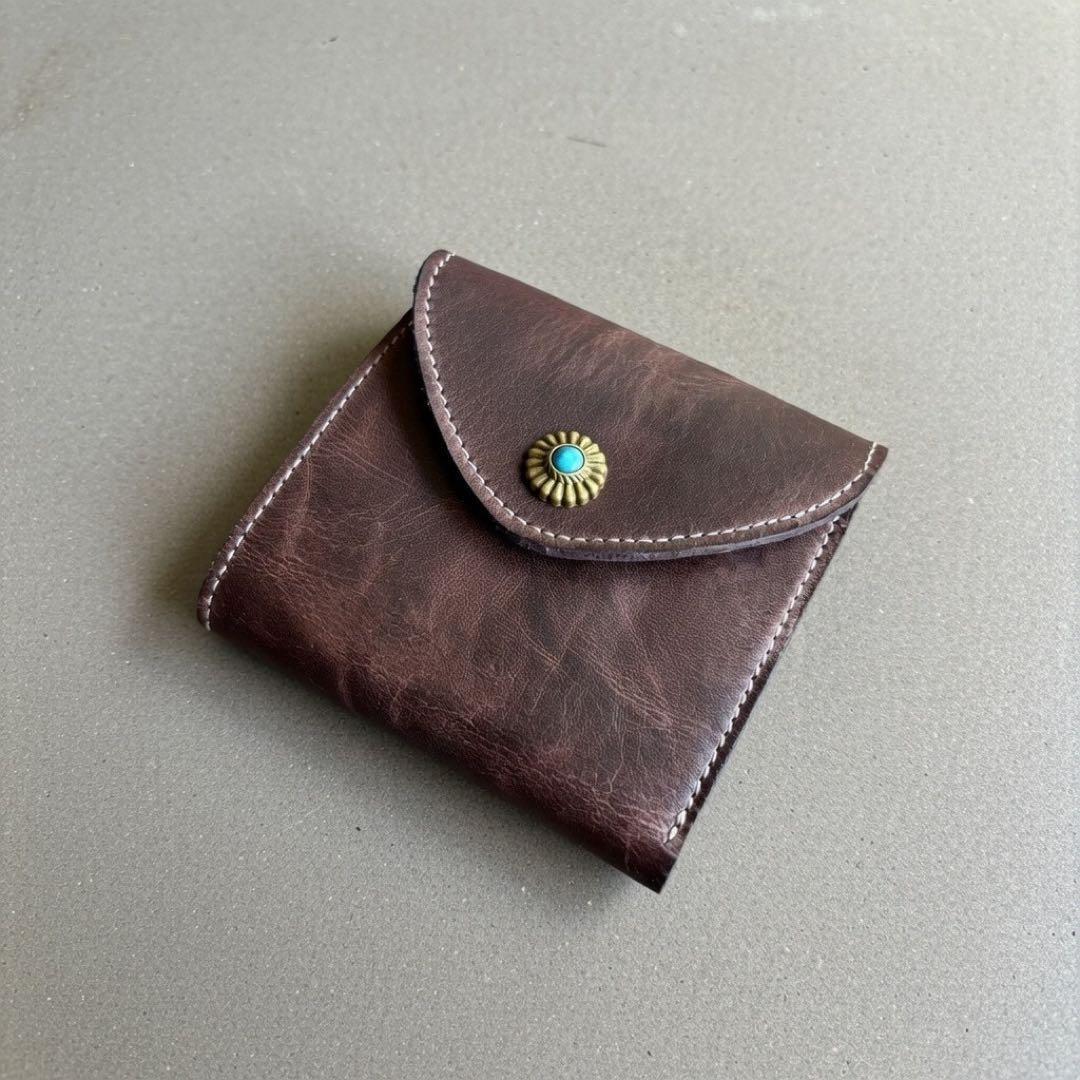 上質なヌメ革(牛革)を使用した、存在感抜群のウォレットです。質感溢れる牛革は、使い込むほどに深みのある色艶へと変化し、持つ人の個性を映し出してくれます。カードは3枚収納可能、さらに紙幣入れと小銭入れを備え、コンパクトながらもしっかり実用性を兼ね備えています。留め具にはリベットを採用し、無骨ながらも高級感のある仕上がり。バイカースタイル、アメカジ、古着好きの方に特におすすめ。日々の使用で革が育ち、自分だけの一点物へと変化していく過程を楽しめます。