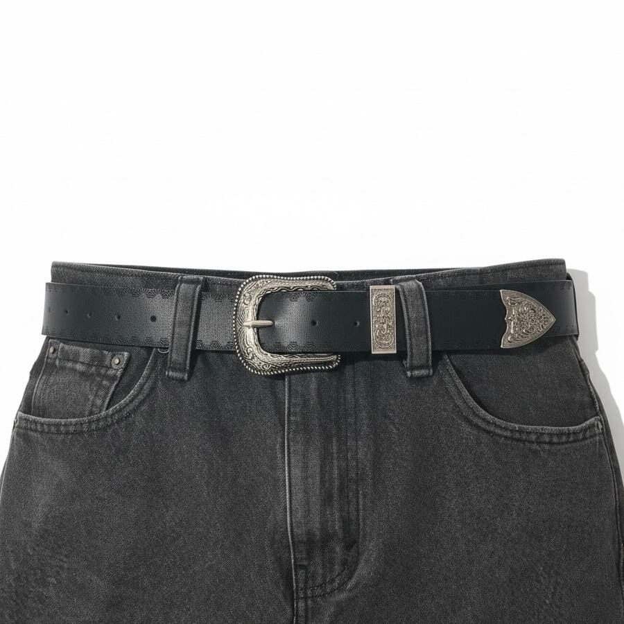 アメリカのカウボーイを彷彿とさせるシルエットのウエスタンベルト。金属のバックルや金具には幾何学的な模様が施されており、上品なデザイン。使い込むほどに味わいが出て、あなたのスタイルをグッと引き立てます。ウエスタンテイストのバックルがアクセントとなり、カジュアルなコーディネートと相性抜群。ビンテージ風の仕上がりで、普段使いから、特別なシーンまで幅広く活躍してくれることでしょう。ぜひ、アメカジやヴィンテージファッション古着やストリートファッション、グランジ、y2kに興味がある方は、手に取ってみてください。
