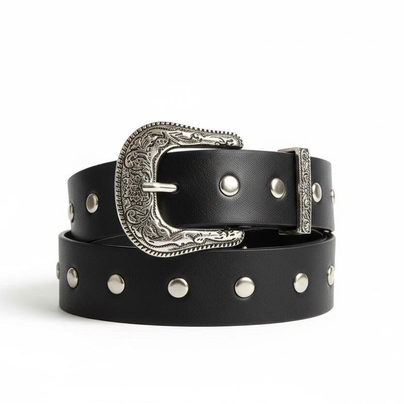アメリカのカウボーイを彷彿とさせるシルエット、バックルに草木のような細かい模様が施されており、上品なデザインのウエスタンベルト。シンプルなコーデでも雰囲気が引き締まります。