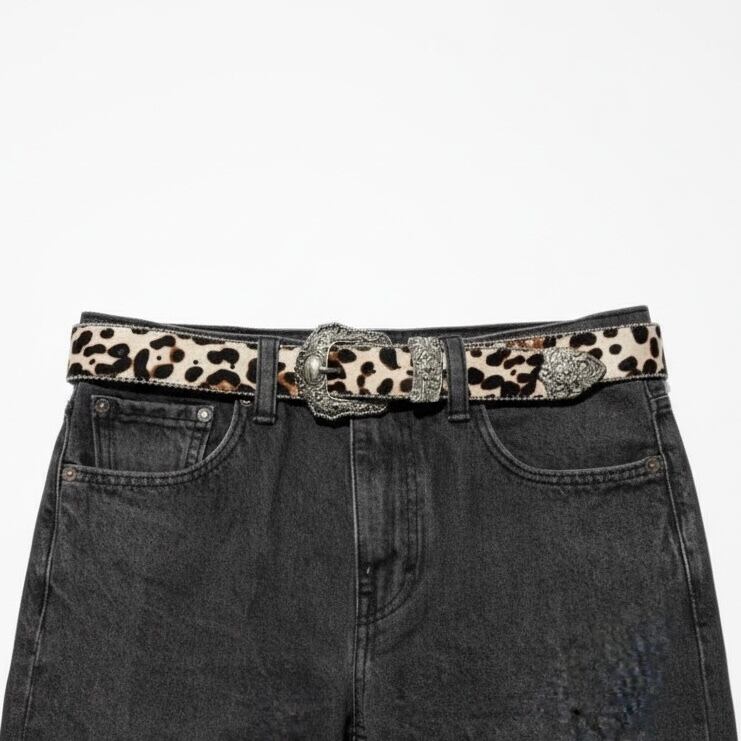 高級感あるシルバーのバックルと、ヒョウ柄で細かく装飾されている存在感のあるデザインのウエスタンベルト。古着やストリートファッション、アメカジ、グランジ、y2k、韓国ファッション、ビンテージなどを好む方に特におすすめ。